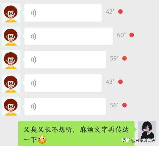 如果你实在不想别人发语音给你,你可以这样做:你可以直接了当地告诉经常给你发语音的朋友:“我每天工作很忙,有事请发文字消息!”