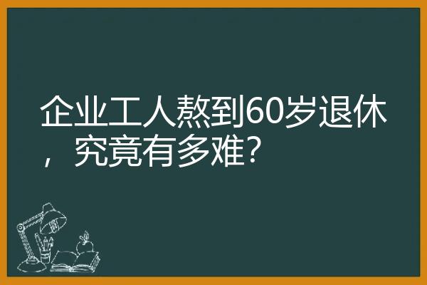 企业工人熬到60岁退休很难的,主要原因是身体健康影响,因为长期从事重体力劳动,年龄超过50岁以后身体状况会随着年龄的增长每况愈下,已经干不动了,极有可能面临下岗的局面,或者是调整到低收入岗位,物价持续走高,工资却越来越低甚至断薪,更有甚者养老保险医疗保险还需自己缴纳的话更是苦不堪言!