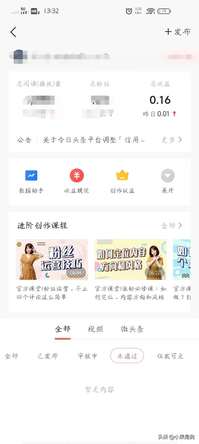就算认证了,也没有什么收益,因为无论是写文章还是拍视频,基本上没有什么阅读量,所以也没有收益。