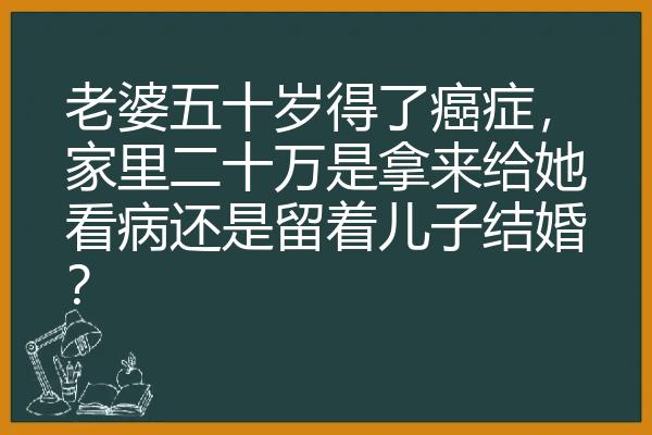 你老婆五十岁,得了癌症,家里有二十万,问是用钱给老婆看病,还是留着儿子结婚?这还要问,先救人要紧,救的多活一天是一天,让病人减少痛苦,也不枉与你夫妻一场的情份。