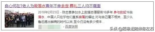 2014年10月25日,64岁的老人陈忠贵,在一次巡视中发现三个青年溺水,他不顾危险,一次又一次地跳入水中,将三个青年全部救起,可是自己却因为体力透支不幸去世。