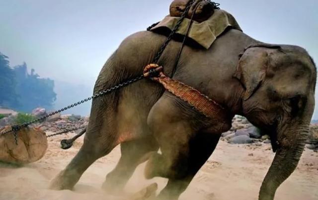 ①指被人类所役使,用来做苦力的大象。比如在老挝,大象就有着很多不堪过往。