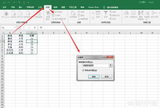 可以使用power query快速的实现你说的这一个操作,点点鼠标即可完成设置。首先我们点击表格的任何一个区域,然后点击数据功能组中的获取与转换找找到从表格,然后会跳出创建表的选项,勾选包含标题,然后点击确定这样的话就进入了power query的编辑界面