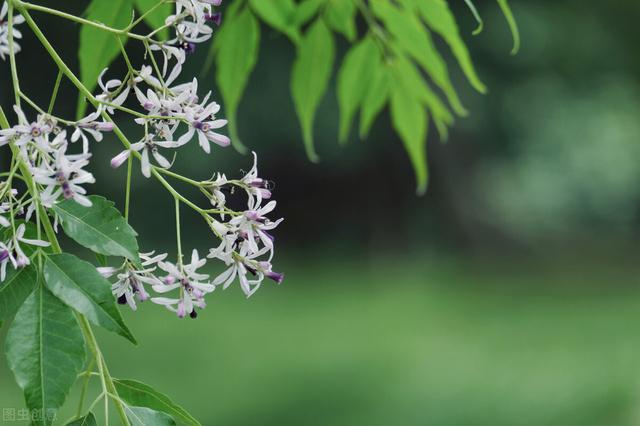 每年的三四月份,苦楝树就会开出淡紫色的花,刹是好看。它的果实还没成熟时,是绿色的,后期会慢慢变成黄白色,皮上还长着一些黑色的小点点。我们把果实称作楝子。