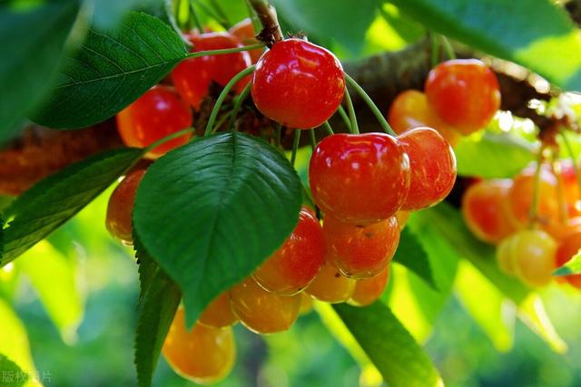 ④.尝:大樱桃的口味有酸甜和纯甜的两种,一般红色的大樱桃都多少带点酸味,黄色的品种大多是纯甜的,如果红色的大樱桃甜的齁嗓子,吃过之后嘴发麻,那么基本都是打过药的。