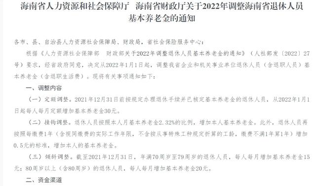 7月19日,在海南退休人员的期盼中,海南省人社厅终于发布了2022年调整退休人员基本养老金的方案。