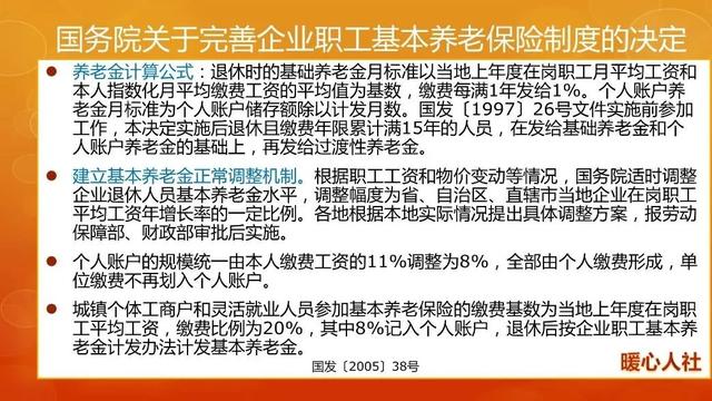 现在企业退休人员的养老金计算公式,主要是依据2005年《关于完善企业职工基本养老保险制度的决定》。