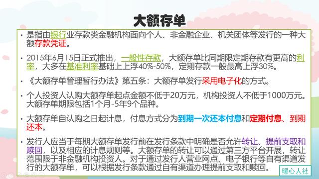大额存单大额存单,这个是有正式学名的,中国人民银行为此还特意发布了一个《大额存单管理办法》,按照相关办法,我国的大额存单最低起存金额为20万元,也就说低于20万元的定期都不能叫做大额存单。
