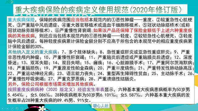 国家重大疾病保险的疾病定义,目前定义了28种疾病,其中6种疾病是所有重大疾病保险必须保障的。人们得这六种疾病的概率,是其他28种疾病概率的90%。