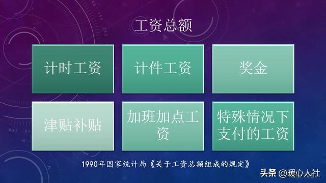 工资总额包括计时工资、绩效工资、奖金、津贴补贴、加班加点工资和特殊情况下支付的工资。