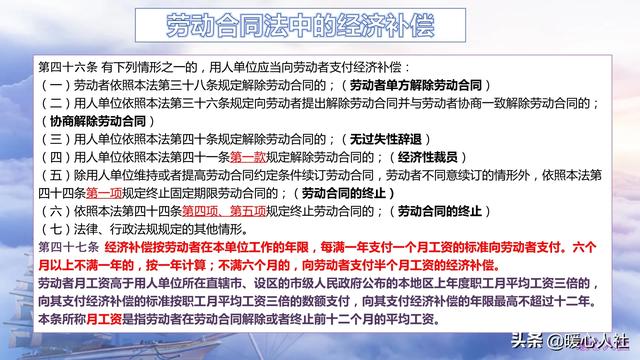 一、劳动者经济『补偿金』和『赔偿金』在劳动法中,与劳动者相关联的2个“偿”,分别是“补偿"和"赔偿"。大家一定要记住,记住它和记住丈母娘的生日一样重要,不能混淆。因为这2种赔偿无论是法律规定,还是产生的依据,以及计算方法都有很大的不同,用大白话说就是差老鼻子钱呢。理解清楚之后,劳动法也就懂了一半,一般的老板可不敢去忽悠你。