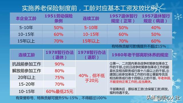 退休属于我国较早时期的计划经济时代的一种制度。1951年,我国制定了《劳动保险条例》,设计了退职养老制度。当时的退休待遇是根据本企业的工龄长短来确定,5~10年领取本人基本工资的50%,10~15年60%,15年以上70%。