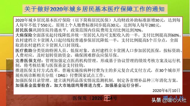 现在的新农合,实际上已经是城乡居民医疗保险了。按照国家《关于做好2020年城乡居民基本医疗保障工作的通知》,明确2020年城乡居民基本医疗保险费财政补助标准提升30元,每人每年不低于550元;原则上个人缴费标准同步提高30元,达到每人每年280元。