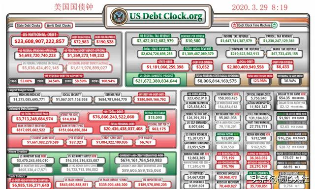 这些钱不是天上掉下来的,当然是借款。开动印刷机有点来不及了,最便利的方式就是发行国债。3月29日美国的国债余额是23.6万亿美元,4月21日美国国债余额达到了24.48万亿美元,也就是说不足一个月的时间美国国债增长了0.88万亿美元。