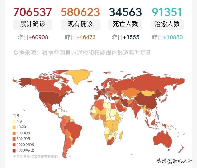 今天看了下新闻,全球现在新冠肺炎确诊病例高达60多万,死亡人数逼近5万例,这对于大家当初认识的新冠肺炎真的不太一样了,当时全球除了中国严防死守,其余国家都跟卖呆似的不当回事,但疫情席卷他们的国家之后,他们都慌了,医疗物资准备不足,粮食储备不够,真是替他们操碎了心。