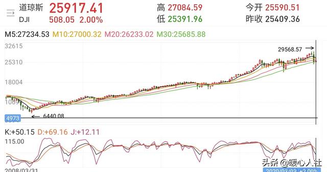 2009年3月,道琼斯股票跌至最低点6440点。从这个时候开始,美国的股市进入了长达10年的牛市,最高点达到了29568点,差一点突破3万点。现在的25917点大约是过去的4倍以上。11年300%多的收益,相当于年化收益率12%,平均收益率是每年30%。