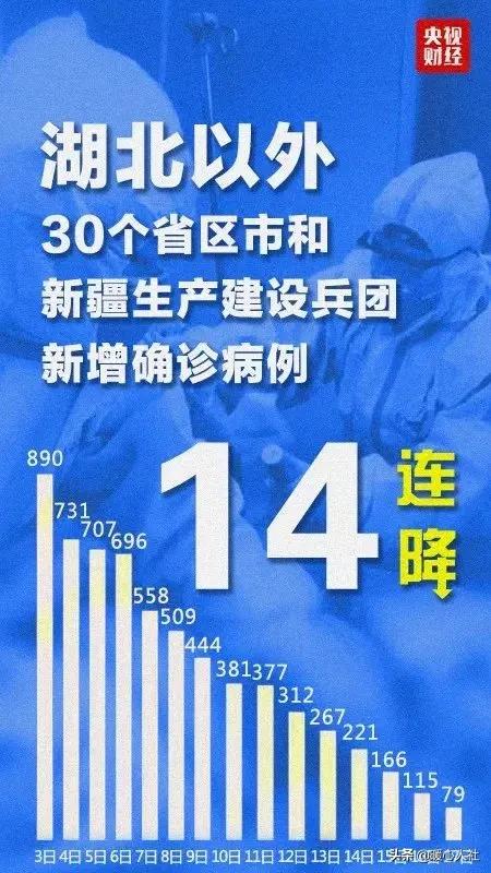 今天的好消息是,湖北省以外30个区市和新疆生产建设兵团新增病例14天连降,由2月3日的890例减少到2月17日的79例。
