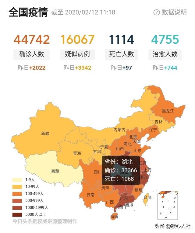 出院的人数也在不断增加,2月11日新出院744人,累计已经接近5000人。如果说,当每日的出院人数大于确诊人数的时候,就完全可以认为拐点已经到了。