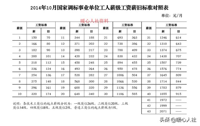 2、薪级工资:主要体现工作人员的工作表现和资历。专业技术人员和管理人员设置65个薪级,工人设置40个薪级,每个薪级对应一个工资标准。