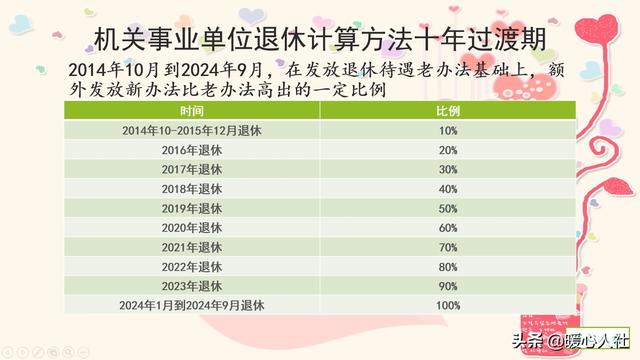所以说对于这部分过渡性养老金的补偿待遇是有明确的规定,比方说2014年退休的人员可以获得10%的补偿待遇,那么到了最后一年可以获得100%的补偿待遇,以此类推,所以根据你的退休年限,看看自己能够获得多少比例的过渡性补偿养老金的待遇。