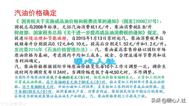 首先是消费税,目前的消费税价格是一升1.52元。也就是说即使汽油价格是0,我们只要通过正常渠道购买汽油,汽油的价格就不会低于1.52元一升。