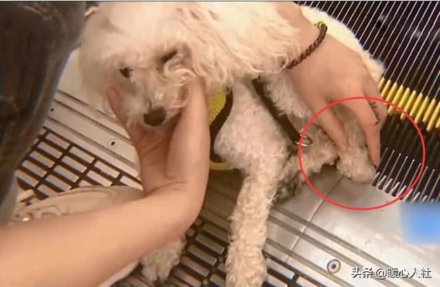 由于小狗身上都是毛,于是在电梯出口,夹住了毛,继而弄断了腿。