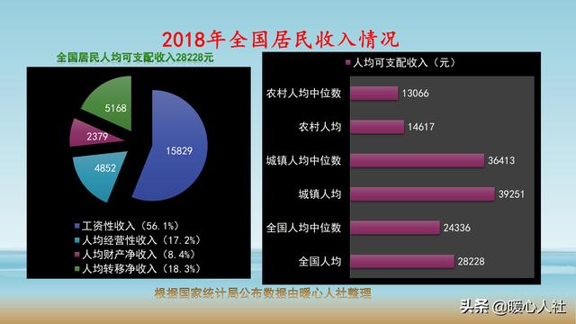 ▶按照2018年全国人均收入来看,全国人均可支配的收入大概是28228元,而工资性收入是15829元。就算是只计算劳动人口数量的平均值,人均工资也就是28460元,平均月薪只有2371元,这样看来,我们的平均收入还是比较低的。