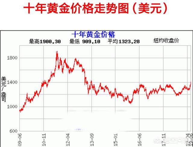 关于黄金的价格确实走势一直沉稳,从2009年进入黄金牛市以后,2011年最高上涨到1900美元一盎司,时过8年一直在1000~1300美元上下浮动,现才回到了1400美元一盎司的水平,并没有多大变化。