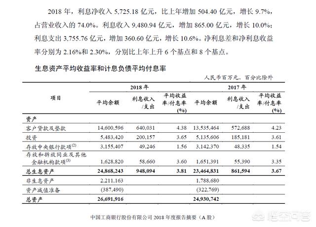 根据工商银行2018年年报显示,2018年工商银行,向客户贷款及垫款14.6万亿元,平均收益率是4.38%。工商银行吸收的存款是19.31万亿元,平均利率成本只有1.45%,利差高达2.93%。