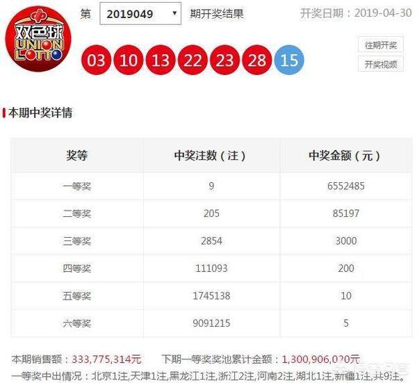 按照福彩公布的2019049期开奖的结果,中两注一等奖奖金总额是13104970元,税后实际到手10483976元。