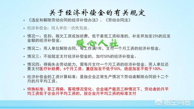 第五,赔偿金赔偿金跟经济补偿金是两码事,一般只适用于用人单位违反劳动合同法规定解除劳动合同的特殊情形。应当支付经济补偿金两倍的赔偿金。比如,用人单位无理由解除劳动者。