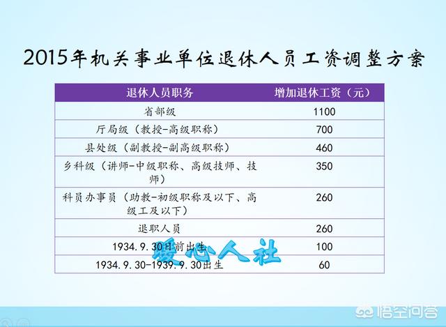 当时的调整方式主要是根据退休时的级别挂钩,科员,办事员,初级职称以下,高级工以下及退职人员每人每月增加260元。
