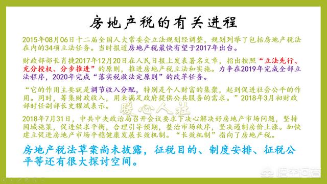 可是房地产税究竟怎么收还没有定?尤其是它的征税目的,制度安排和征税公平都有很大的讨论空间。