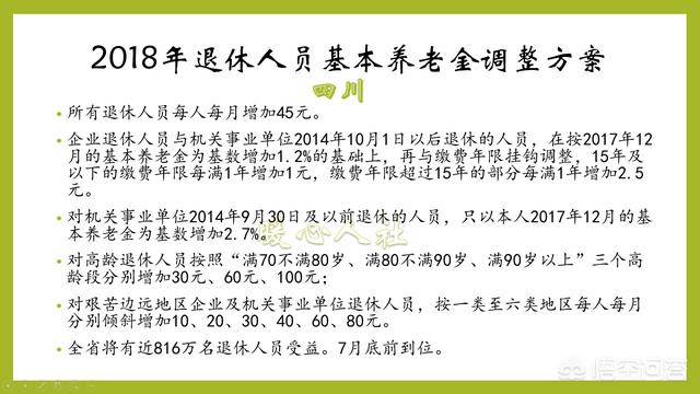 2018年7月20日,四川省退休人员养老金调整细则发布。
