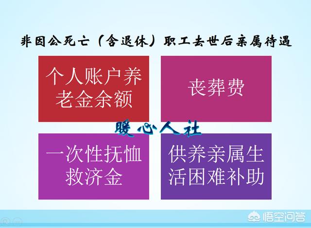 职工去世后的待遇,一般包括丧葬费,抚恤金,个人账户养老金的余额,个别有生活困难遗属补助。当然也包括我们没有领取的养老金调差部分。