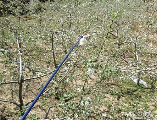 ① 采取人工授粉,在苹果树刚开始开花的时候效果最好,但是苹果开花的时间不统一,遇到低温或是倒春寒的气候,开花的时间就会延迟,到了后面再开的花,坐果率就不高,因此,在进行人工授粉时,最好是分批进行,保证让所有的花都能授到粉。人工授粉之前,首先要制作好授粉器,授粉的时候,将柱头往花粉里蘸一下,再来点授花朵,蘸一次就可以授花8~10朵。