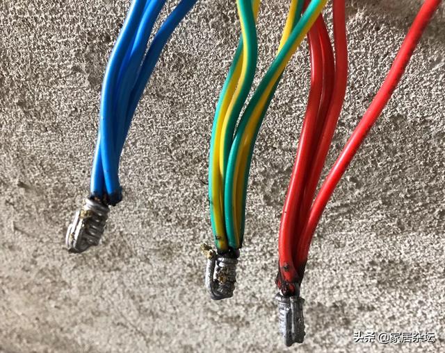 家装线路,软线的线头一定要焊锡处理,这一点很重要!很多师傅在接开关插座的时候习惯性剥开皮,然后稍微拧一下就插入接线孔。最后螺丝一拧进去,线头全部散开了,本来电线有19根铜丝,实际上只有10根铜丝接触到螺丝。如果在重负荷的情况下,接头发热烧掉是很常见的。如果实在没条件焊锡,那就把电线剥长一点,然后对折一下再插入接线孔,效果也要好很多。