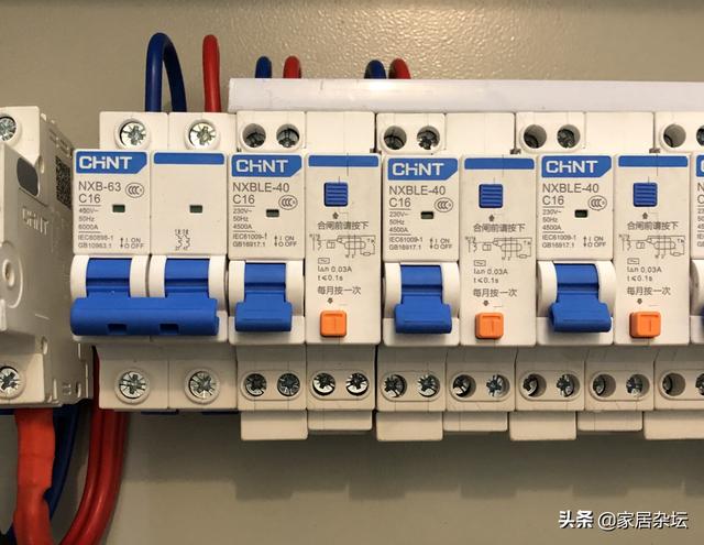 漏电保护器的型号有DZ47-63LE系列或正泰NBE7LE系列。最好买价格贵一点的。另外的分路断路器根据室内的照明、空调、电视机、卫生间的浴霸、厨房的抽油烟机、电磁炉、微波炉及室内需要安装的插座等,购买单极1P断路器安装在配电箱内。便于一旦出现问题后的维修保养和不至于影响全部系列。见下图所示。