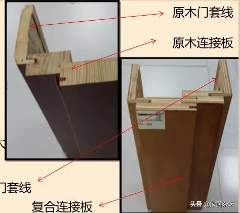 - 门框也就是上面所说的门套,上面给大家介绍了,它基本上应该是由两大部分组成的,也就是连接板和门套线来组成一个完整的门套。门套线和连接板之间是进行组装而成的,没有是一体的。二者的组装方式都是采用的木榫的结构,也就是在连接板的侧面开槽,然后把门套线进行加工,直接安装到连接板的槽里面。或者90°对接和45°八字安装。
