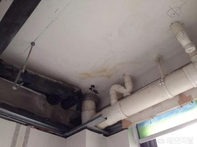 楼板下的与地漏连接的PVC立管上有没有水印,周围的顶板有没有湿,如下图: