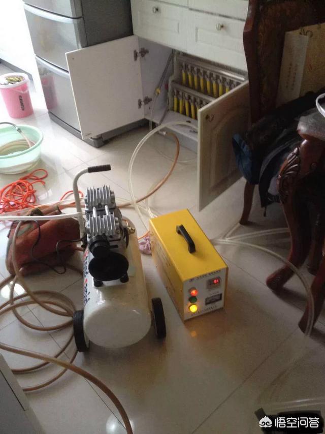 - 这种方法可以把地采暖内的所有的水都排干净,就是操作有点麻烦,而且还需要使用空压机,自己操作起来有点吃力,我们可以找专业水暖工来进行操作。