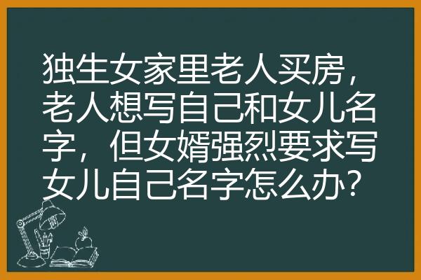 独生女家里老人买房,老人想写自己和女儿名字,但女婿强烈要求写女儿自己名字怎么办?