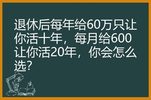 退休后每年给60万只让你活十年,每月给600让你活20年,你会怎么选?