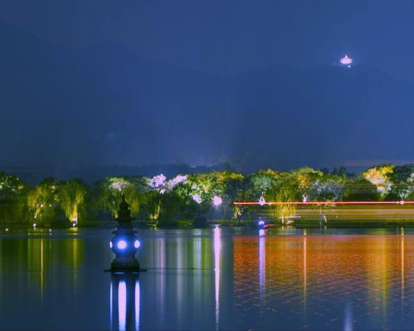 于是就形成了水中月,月照塔,塔照月的神奇而美妙的现象,这也是三潭印月的由来。