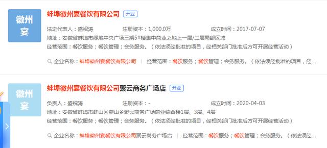 经过搜寻相关网站信息找到了关于徽州宴公司的相关信息,一共有三个公司: