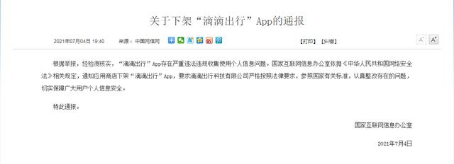 先说滴滴出行这次是什么事件?7月4日,国家网信办发布了一则通报称:下架“滴滴出行”App,原因是存在严重违法违规收集使用个人信息的问题,要求应用商店下架“滴滴出行”App。并要求滴滴公司按照国家法律规定及标准的要求,认真整改存在的问题。