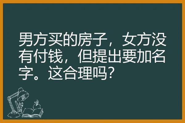男方买的房子,女方没有付钱,但提出要加名字。这合理吗?