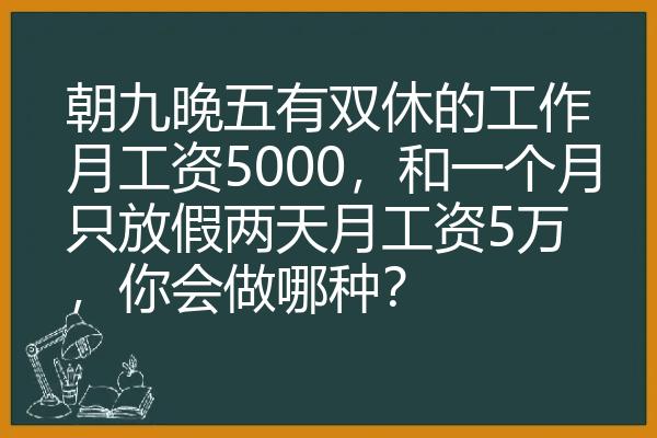 朝九晚五有双休的工作月工资5000,和一个月只放假两天月工资5万,你会做哪种?