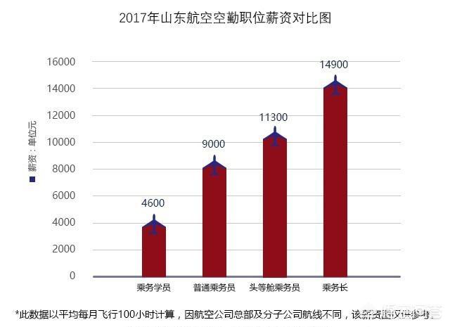 上图为山东航空公司2017年,不同级别的空姐的工资对比。这是假定空姐每月飞行时间为100小时,其他的因素不加以考虑。我们不难看出,山东航空公司空姐的工资是比较高的。但是,不同级别的空姐之间,工资差别也是很大。