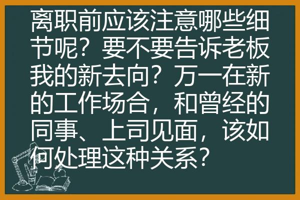 离职前应该注意哪些细节呢?要不要告诉老板我的新去向?万一在新的工作场合,和曾经的同事、上司见面,该如何处理这种关系?